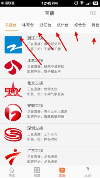 2、这里有很多的分类,包含了各个电视台的卫视、体育频道、综合体和特色等等.