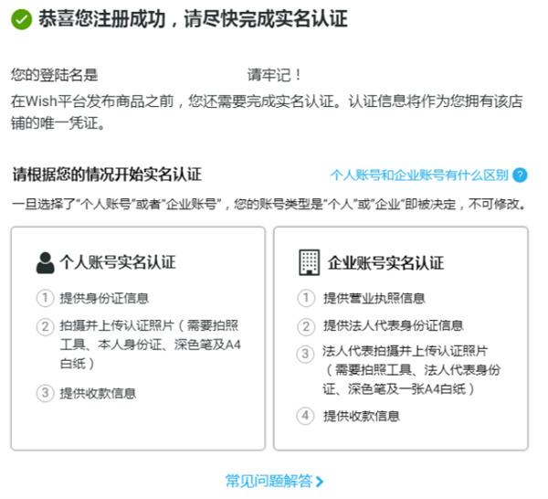 请选择您的Wish账号类型“个人”或者“企业”,可通过“个人账号和企业账号有什么区别”来了解更多信息。