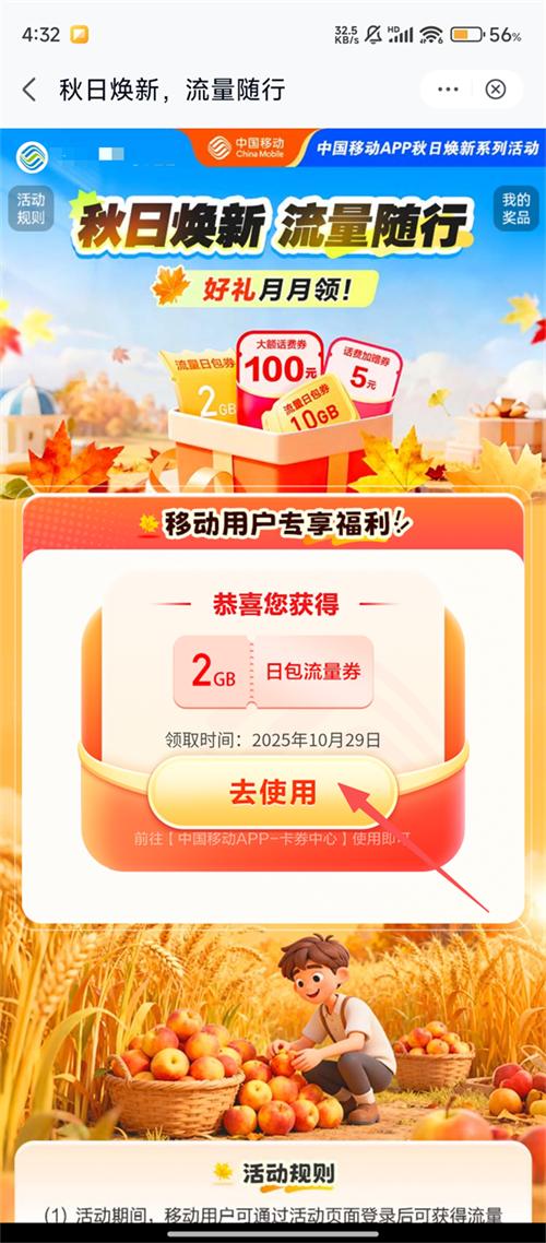 4、参与活动领取流量包后,点击【去使用】,就能畅快使用流量包啦。