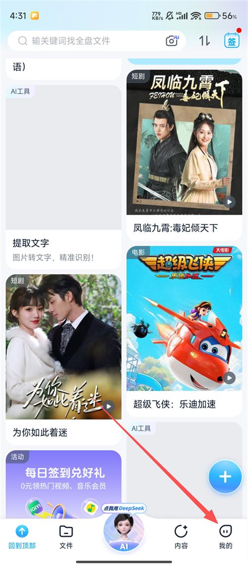 1、打开中国移动云盘,点击右下角【我的】,进入个人页面,开启流量包领取之旅哦。