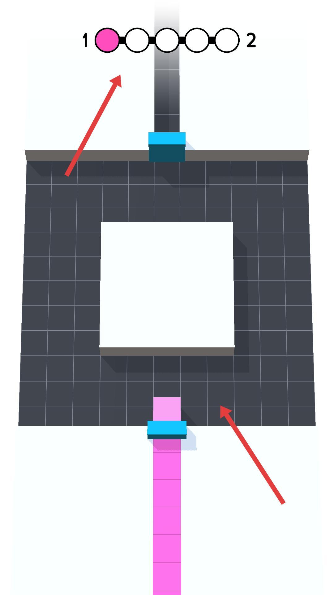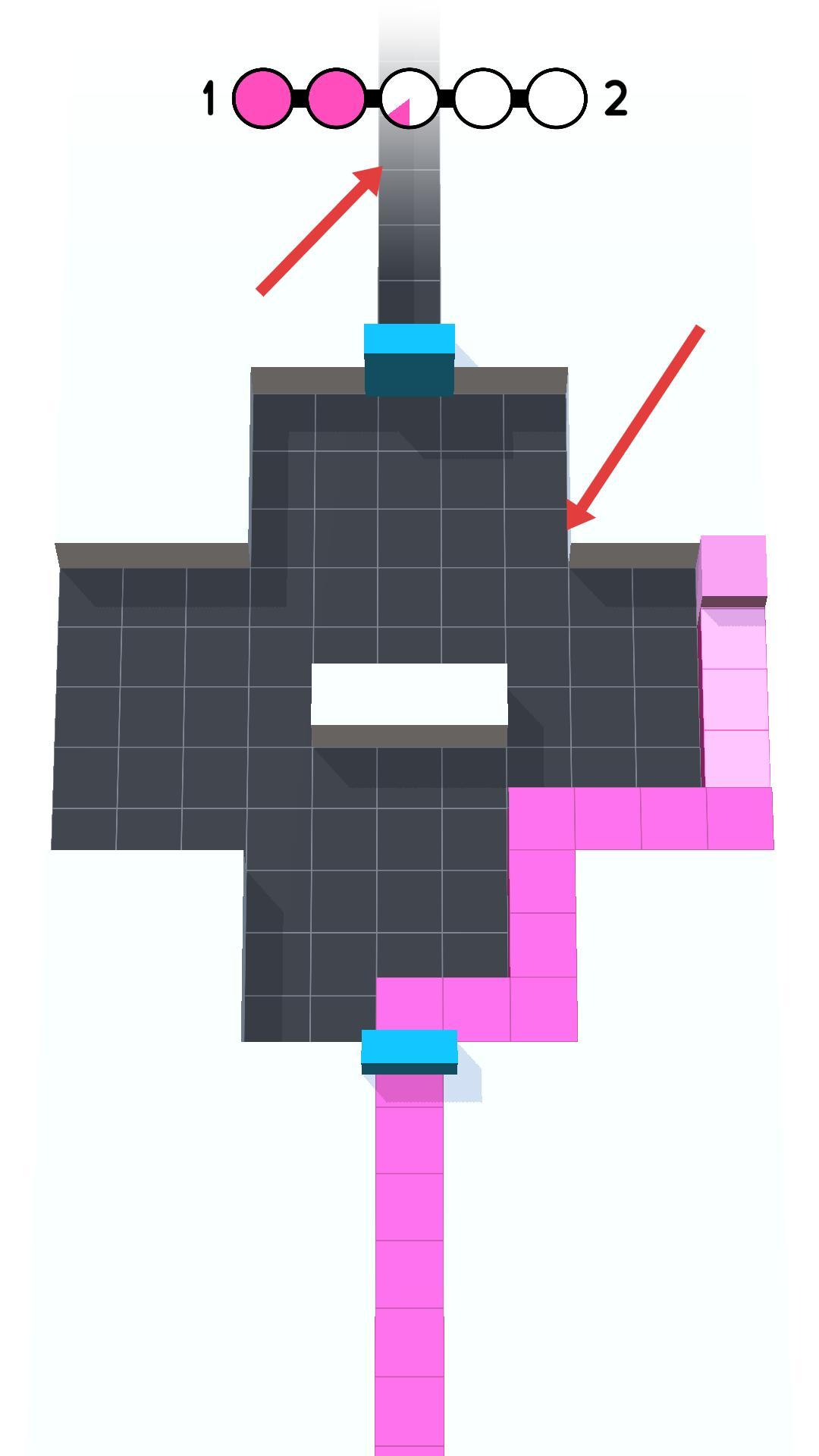 3、继续操作,粉色方块会经过不同区域,上方圆形进度不断变化,当第一个圆形填满粉色时,意味着完成部分任务,需继续绘制。
