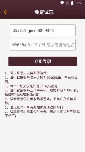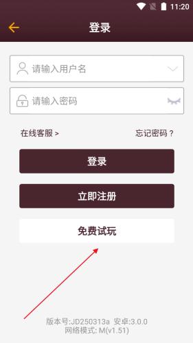 1、首先進入登錄界麵,點擊最下麵的【免費試玩】;