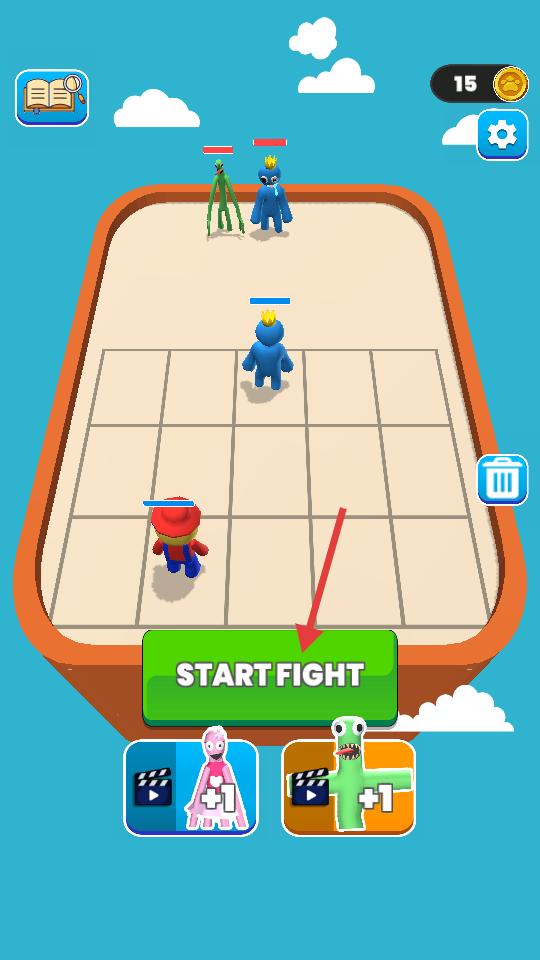 2、棋子布置好后点击下方START FIGHT按钮开启战斗,点击后双方棋子自动交战,过程中无需手动操作,需靠战前布阵和角色强度取胜。