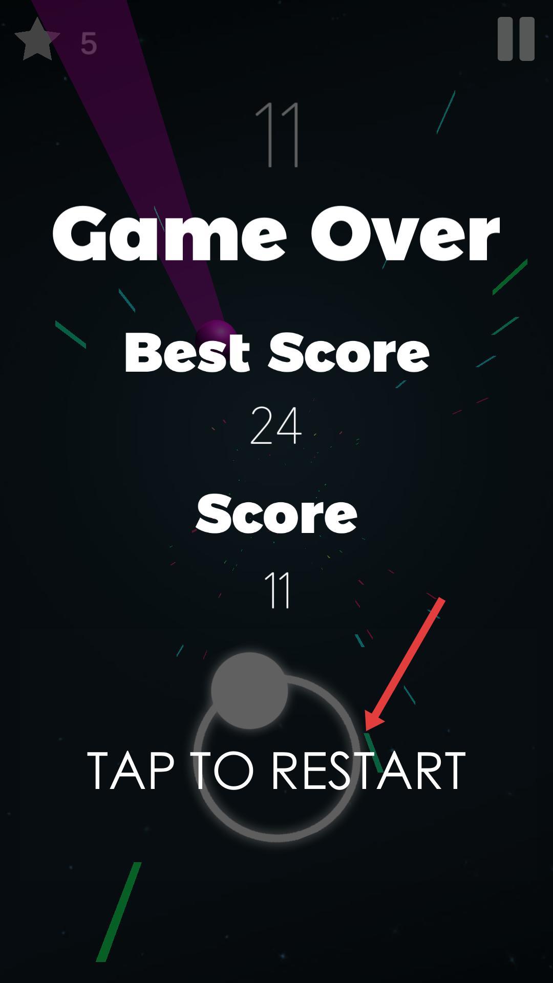 4、游戏失败界面会显示游戏结束,还有最佳分数和本次分数,点击重新开始可再次挑战,争取获得更高分数。