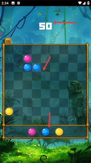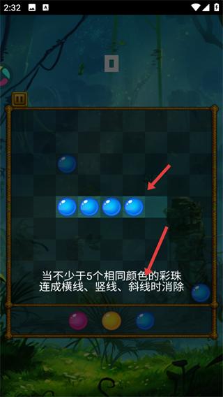 2、游戏时点击棋盘空白位置,可将彩珠挪动到该位置通过挪动彩珠来布局,为后续消除做准备。