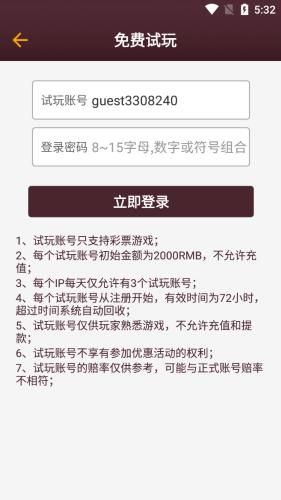 3、在免費試玩界麵輸入密碼,點擊【立即登錄】;