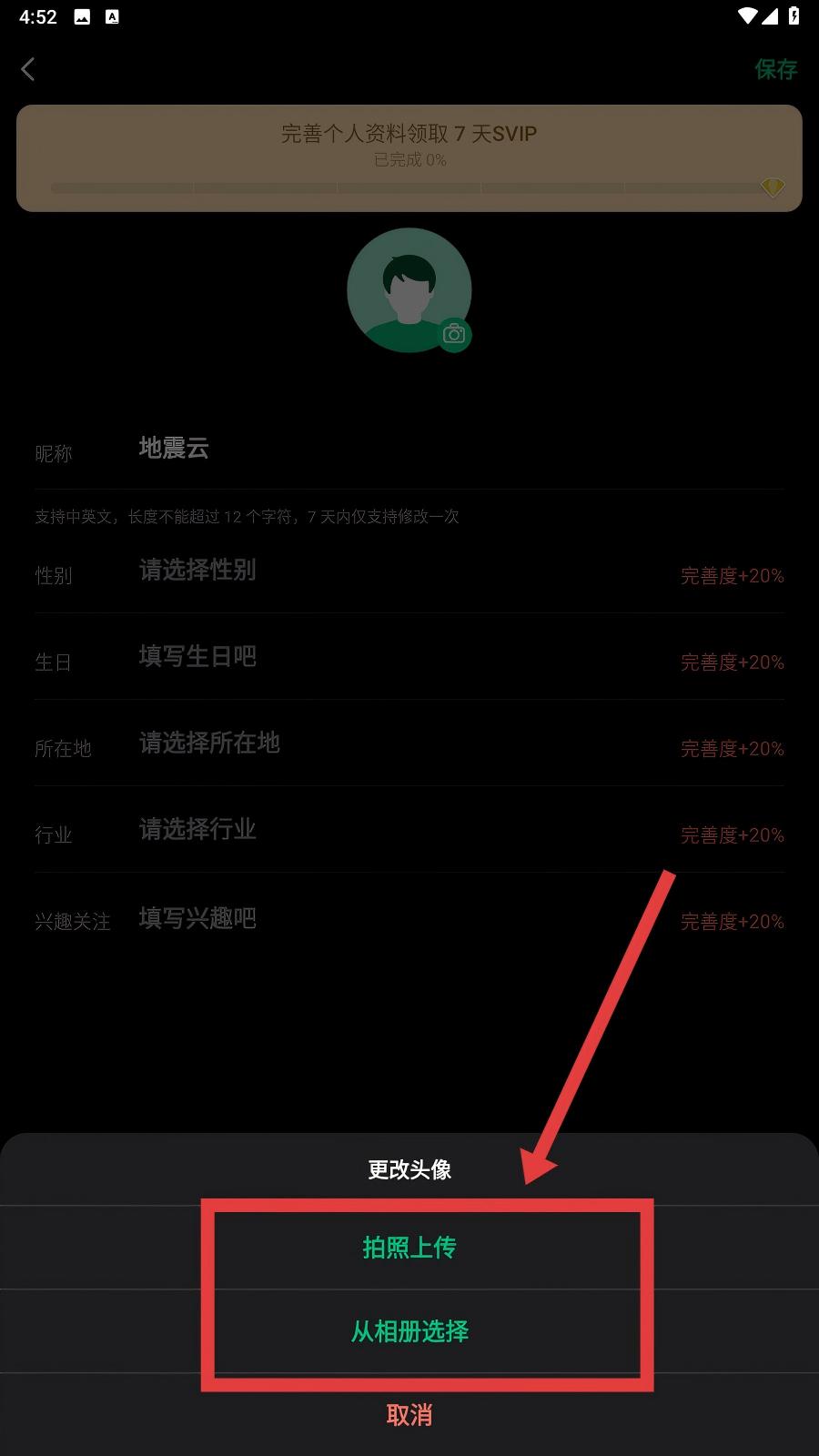 4、在更换头像选项中,选择一个喜欢的方式,就能完成头像更换,让你的个人主页更具个性呀。