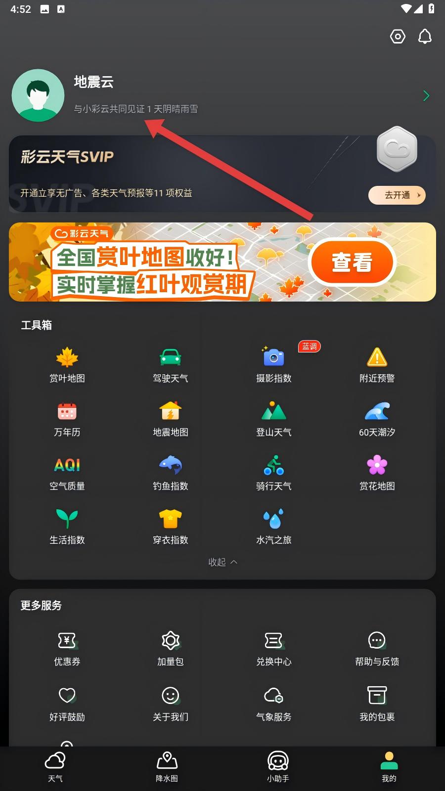 1、打开彩云天气软件,点击底部【我的】,开启更换头像的操作流程哦。