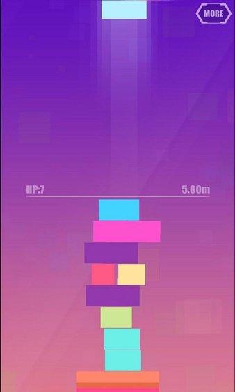 玩家需要将从天空上落下的方块累计起来,使其组成一个由七彩方块形成的高楼,你的主要任务就是使这个方块高楼不会坍塌,切记需要将高楼打好根基才能坚持更久。