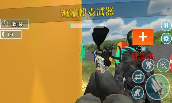 3、军队染料彩弹射击演习比赛,运用彩弹枪击倒更多对手吧!
