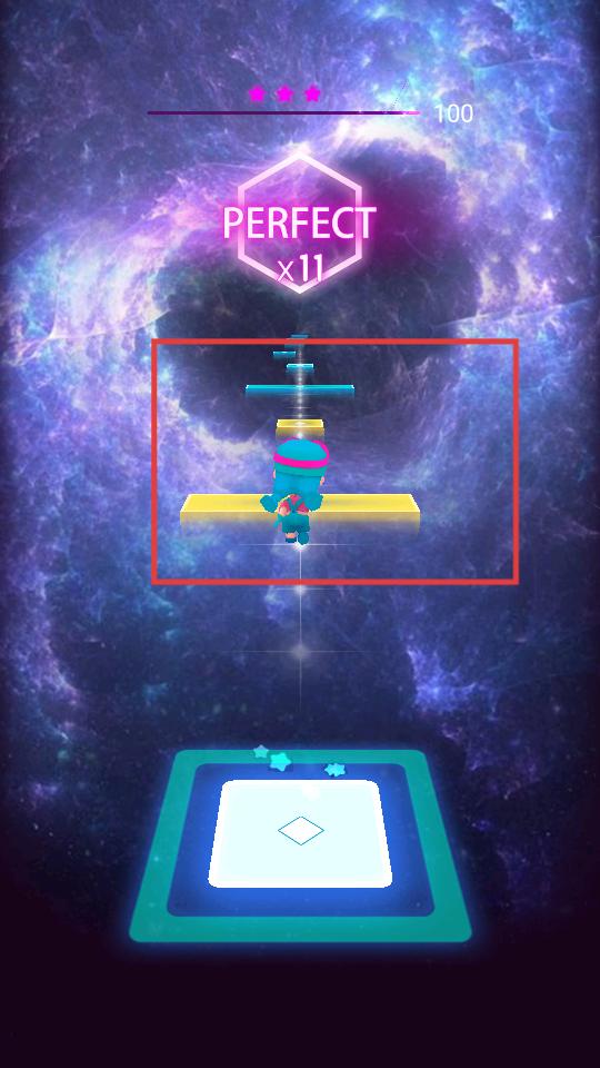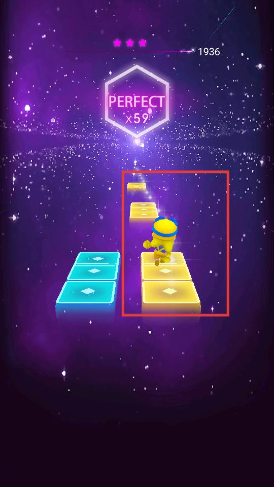 2、控制角色踩准方块,获取【PERFECT】评价,积累分数。