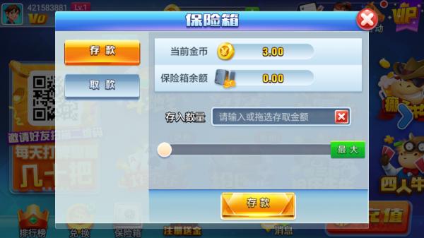 2、存款和取款的導航都在彈出的對話框左側,輸入對應的金額,然後點擊【存款】即可;