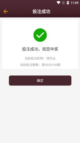 5、最後彈出投注成功界麵即可表示購彩成功。