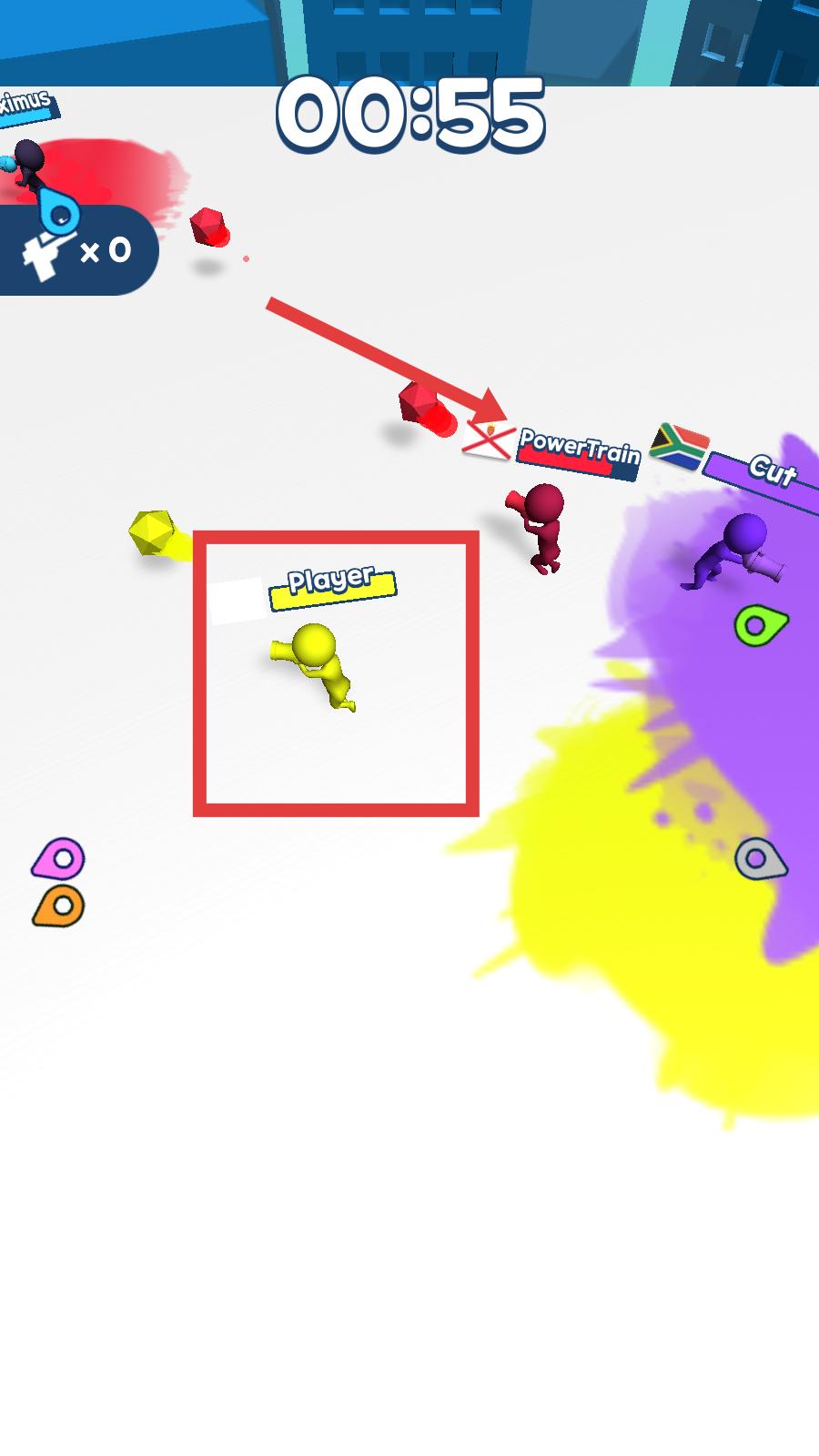 3、操控角色靠近可涂鸦的区域或其他对手,进行色彩喷射操作,用自己的颜色覆盖场景或对手,以此来扩大自己的涂鸦范围,同时也能干扰对手。