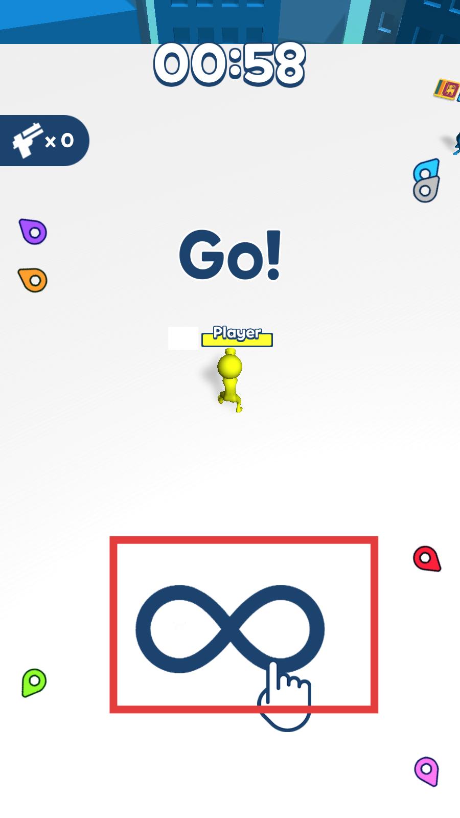 2、游戏开始后,通过屏幕上的无限符号形状操控区域,滑动或点击来操控小人角色在场景中移动,灵活调整位置。
