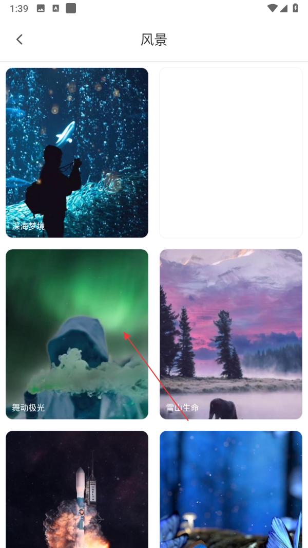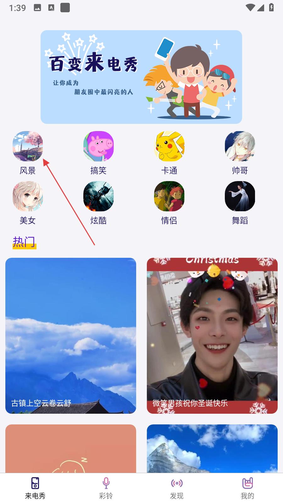 1、在首页界面,点击【风景】分类图标,进入风景类来电秀页面。