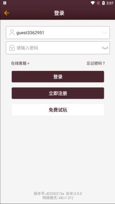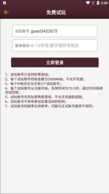 3、也可以使用试玩的账号来登录,点击免费试玩后,使用平台给的账号进行登录即可。
