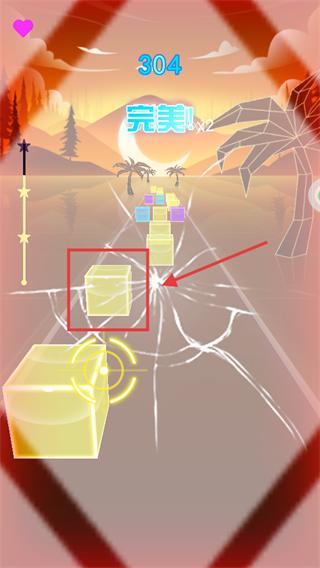 3、保持节奏,连续击中【黄色】-【方块】音键,【完美!x2】击中触发破碎,提升分数。