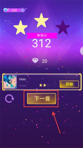 4、关卡结束后,点击【下一首】按钮,挑战新乐曲,解锁背景,丰富体验,积累分数。