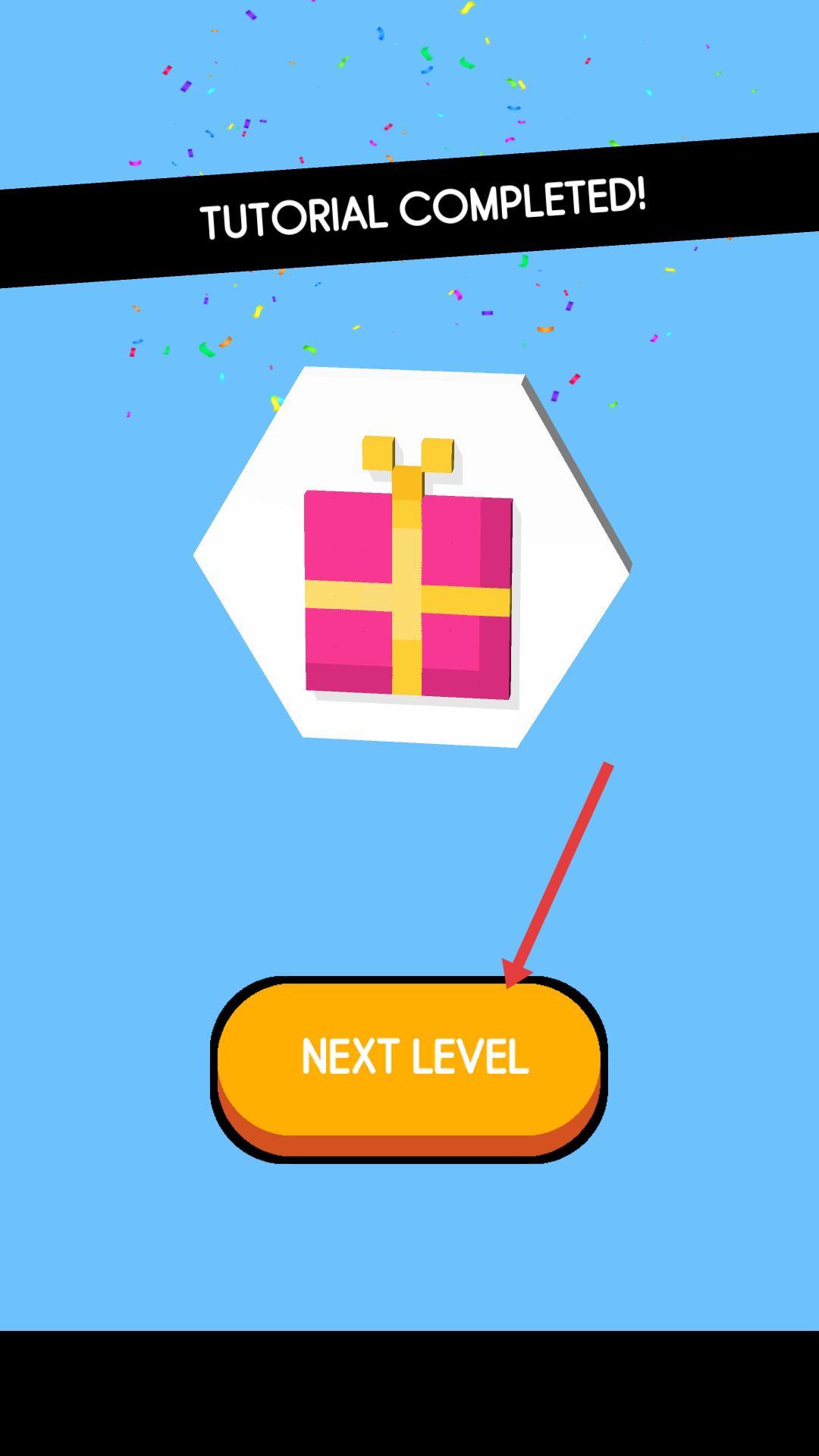3、教程完成后,界面显示教程关卡完成,点击下一关按钮,进入第一关,开启正式关卡的挑战。