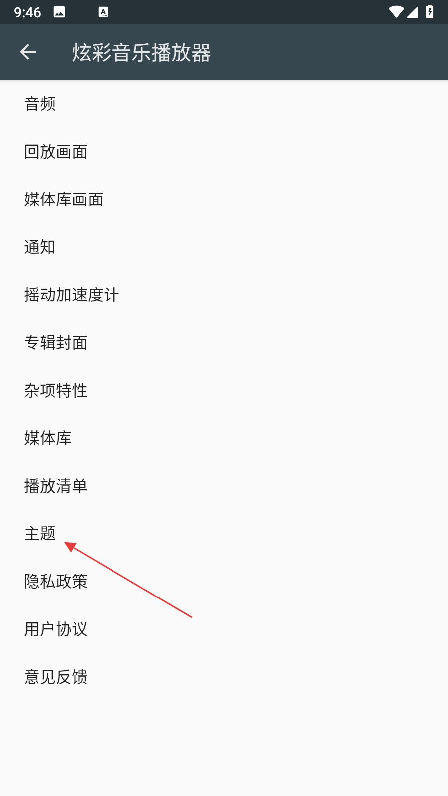 3、在设置页面,点击【主题】,进入主题选择页面。