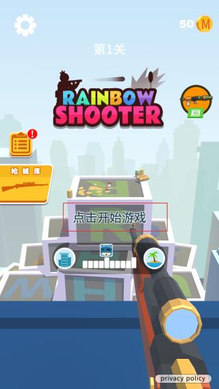 1、玩家下载游戏之后然后点击进入,在游戏主界面,点击图标点击开始游戏按钮,进入彩虹射手游戏关卡。