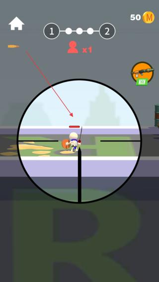 2、玩家进入关卡后,通过滑动屏幕来操控瞄准镜移动,在瞄准镜中找到敌人,将准星对准敌人。