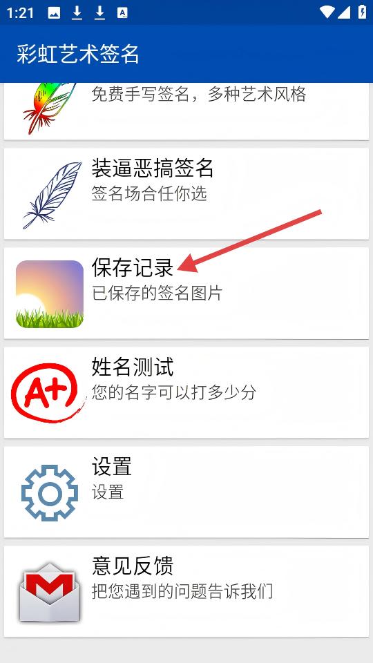1、在彩虹艺术签名主界面,点击【保存记录】,可查看已保存的签名图片。