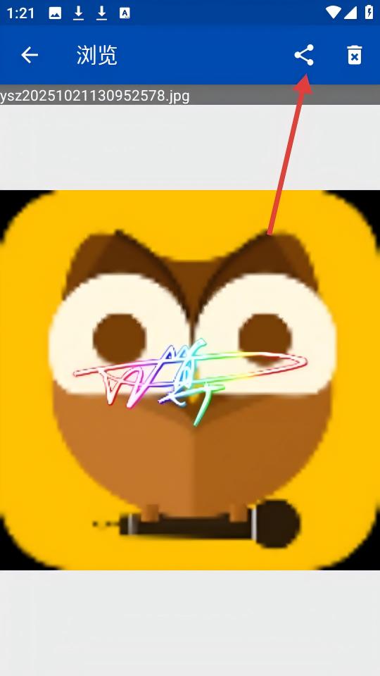 3、在浏览图片页面,点击右上角分享图标,可进入分享选择界面。