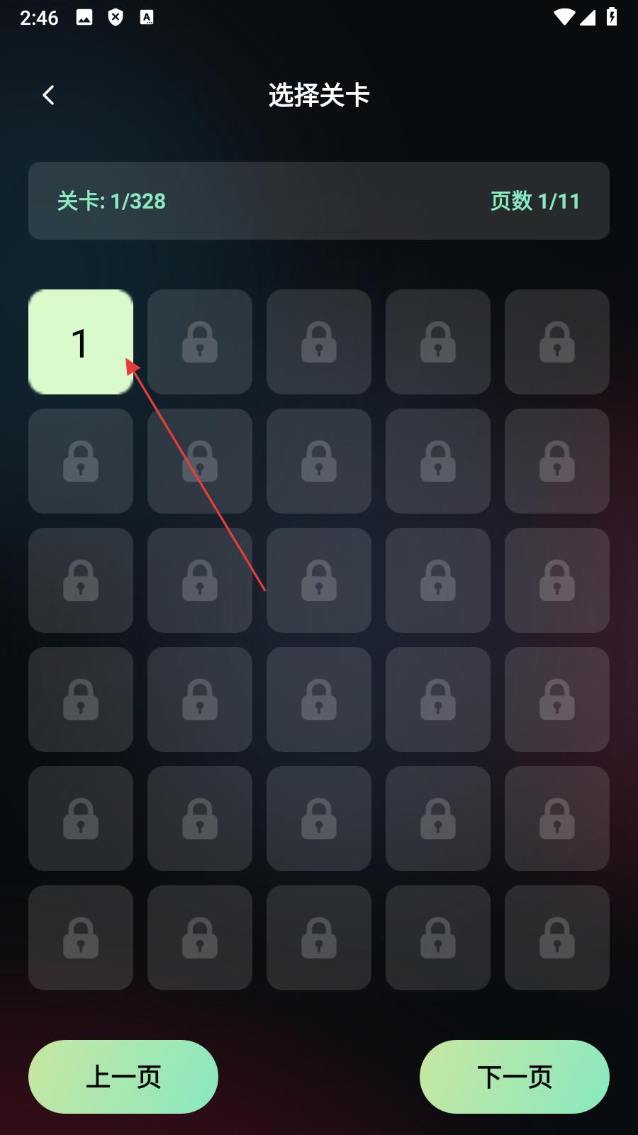 3、在选择关卡页面,点击【关卡1】,进入看图猜剧名的第1关。