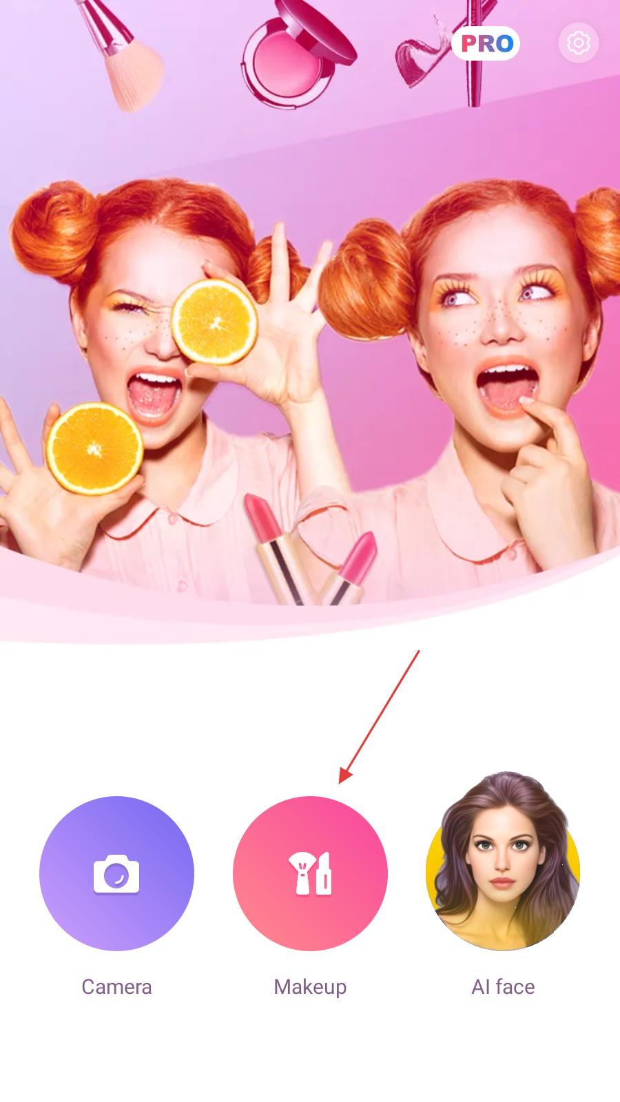 1、打开彩妆相机,点击【Makeup】,进入美妆功能界面。
