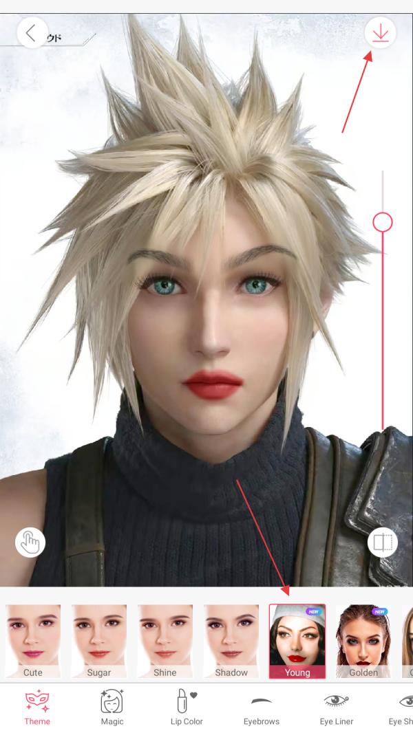 4、在美妆效果页面选择【心仪妆容风格】后,点击【下载图标】,即可完成美妆创作。