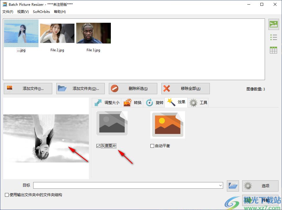 7、如果需要设置黑白的图像就可以启动灰度功能,勾选就可以处理图像