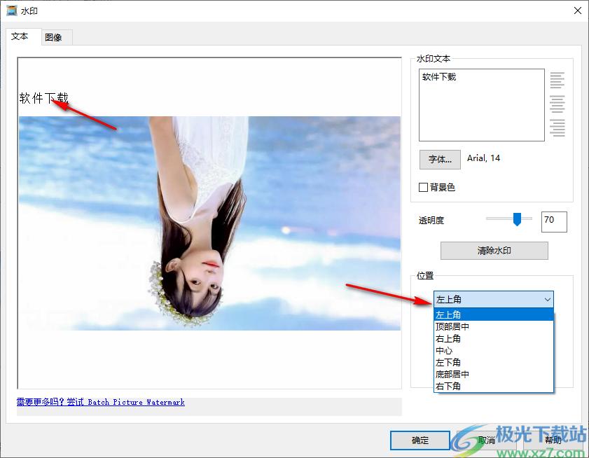 10、这里是水印设置界面,可以在软件输入需要附加到图像的文字内容,在下方设置文字显示的位置