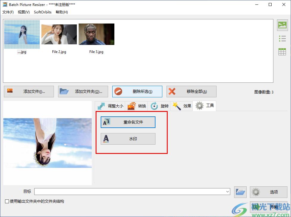 8、显示重命名以及水印功能,如果担心图像名字重复就可以设置新的前缀、后缀