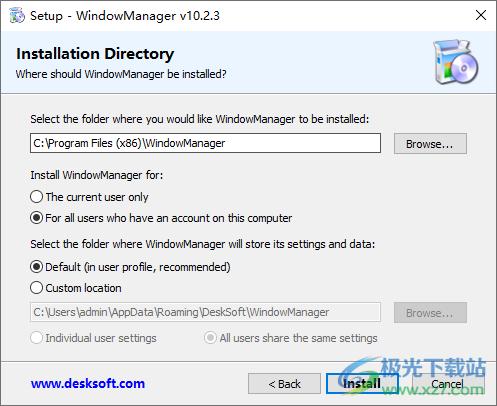 1、将WindowManager安装到电脑,设置软件的安装地址
