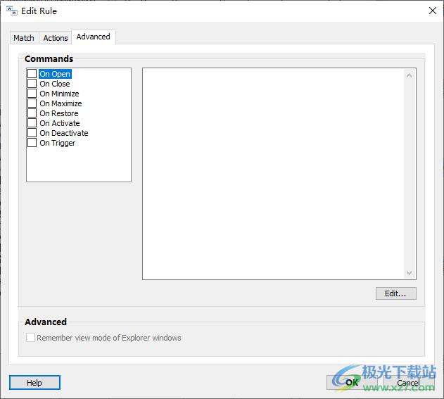 WindowManager 可以在窗口打开、关闭、最小化、最大化或发生触发时执行各种命令。例如。它可以键入文本、按下组合键或单击鼠标按钮等。您可以使用操作列表中的复选框启用所有这些事件。编辑字段包含命令,您可以为每个操作使用最多 1 KB 的文本。有关支持的命令及其语法的详细信息,请参阅“命令”一章。