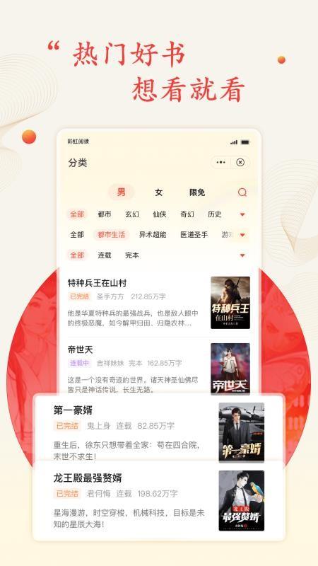 彩虹阅读最新版本这是一款可以给小说阅读爱好者们带来更多优质书籍阅读资源的应用程序软件,通过该彩虹阅读最新版本软件能够掌握到超多精品有趣好书推荐,这里的小说阅读资源分类十分的齐全,大家喜欢看的小说类型都可以在此轻松快速的查找观看,使用起来非常的轻松容易;该平台是由北京点点阅信息技术有限公司专门为用户朋友们研发提供的小说阅读应用,全网超多精彩热门小说推荐汇集于此,每天都会更新超多原创小说剧情,轻松阅读观看;对该软件感兴趣的朋友们可以来本站下载体验一番!