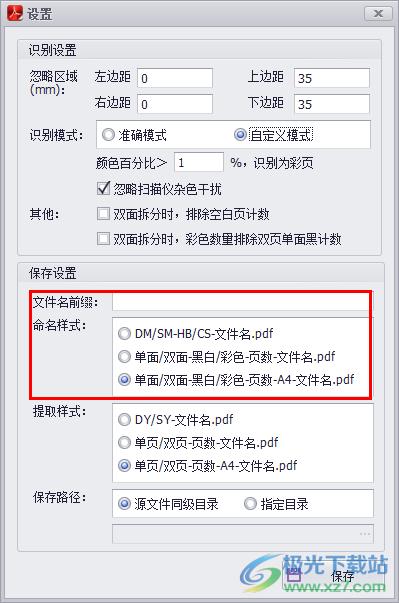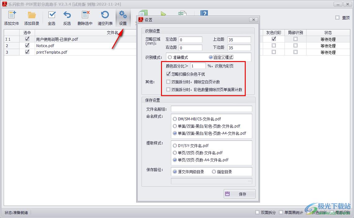 2、可以在软件设置识别的范围,可以对指定页面颜色识别