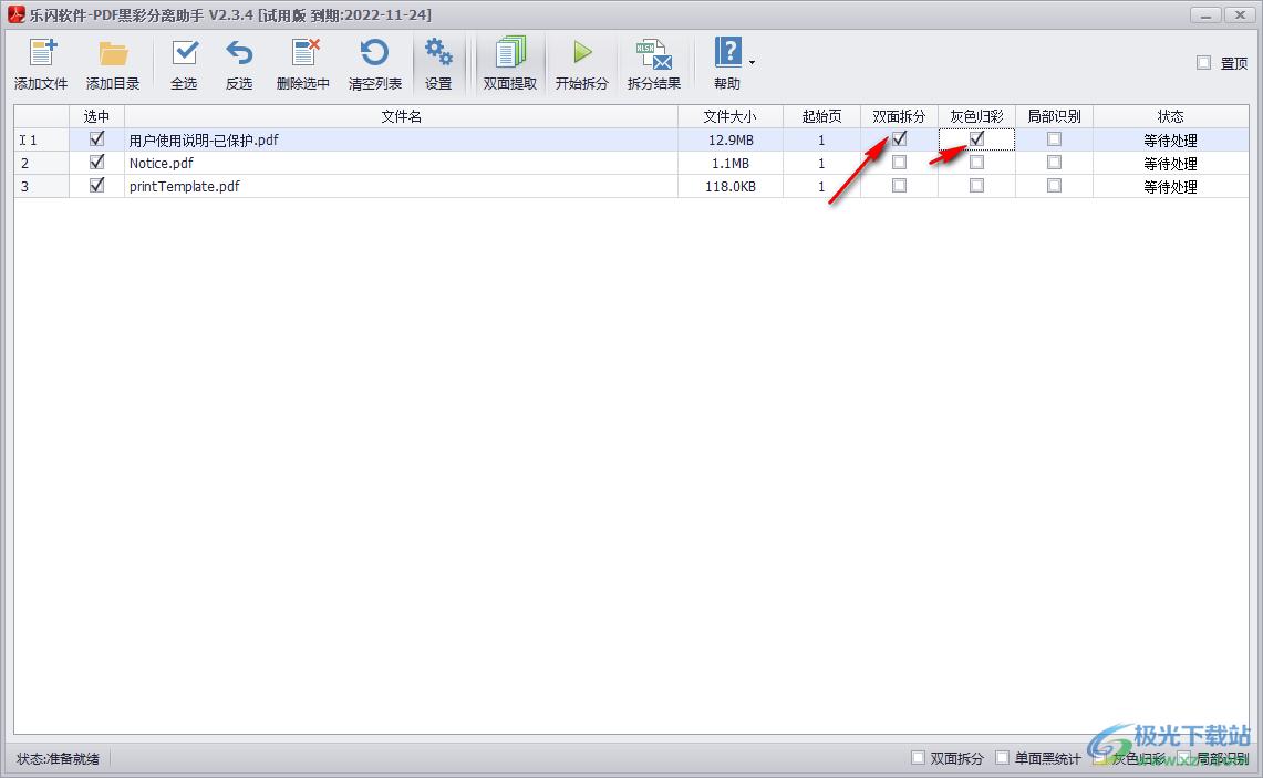 1、启动乐闪PDF黑彩分离助手就可以添加PDF文件处理,可以在软件勾选需要处理的模式,也可以在右下角底部勾选处理的模式
