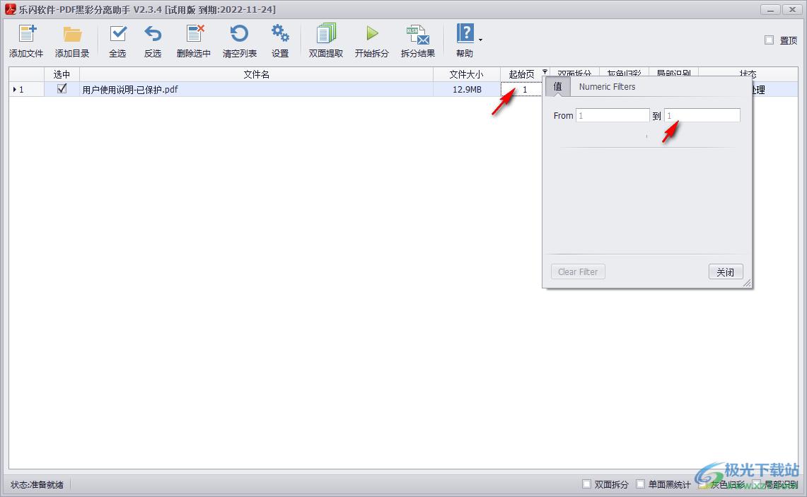 5、还可以在软件界面设置起始页,可以输入页面范围