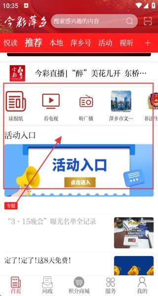 3、设有市直单位,新闻媒体,企业院校等板块,整合信息资源,像今彩直播等提供读报纸、看电视等功能,活动入口方便参与本地活动,促进信息传播与交流。