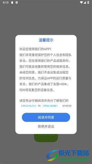 1、打开软件,会弹出用户隐私协议进行仔细阅读之后,点击同意进入。