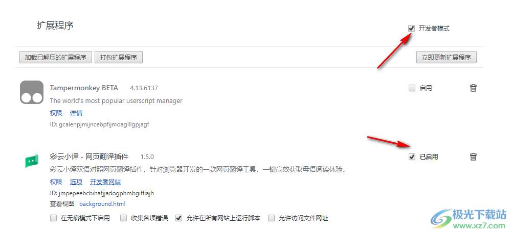 4、如果双击xiaoyi.crx无法添加就自己拖动到浏览器的扩展插件界面,需要启动开发者模式才能添加插件