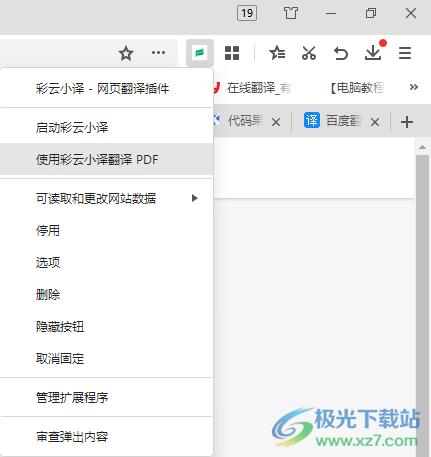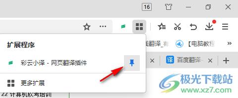 3、彩云小译直接在浏览器顶部显示,可以在这里点击固定按钮,将其显示在浏览器界面