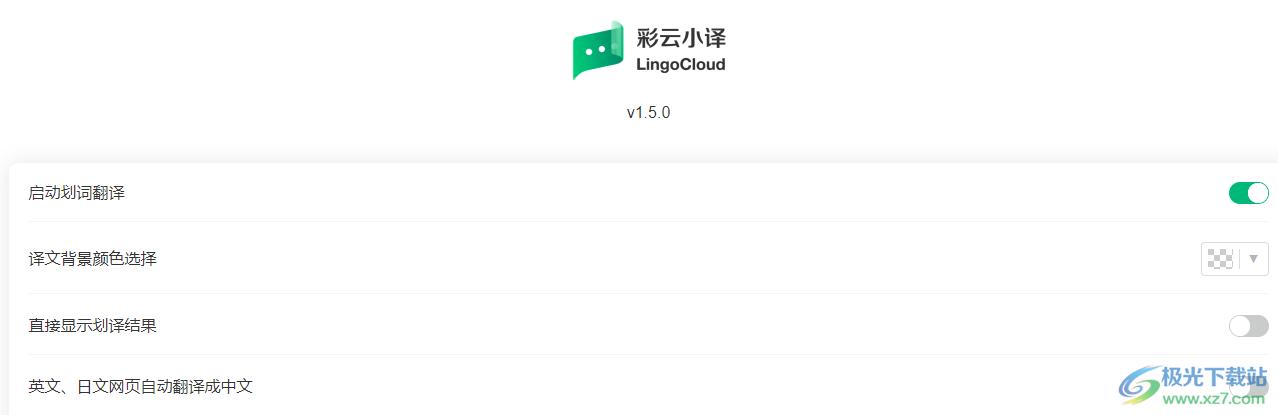 5、进入设置界面:启动划词翻译、译文背景颜色选择、直接显示划译结果、英文、日文网页自动翻译成中文