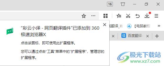 2、提示彩云小译已经添加到浏览器,现在可以启动该插件执行翻译