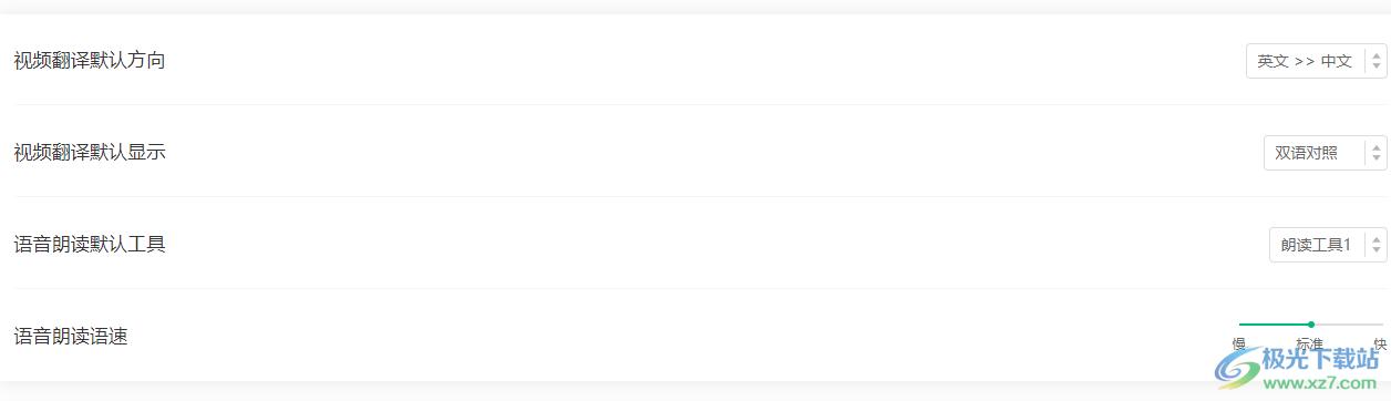 6、支持视频翻译默认方向、视频翻译默认显示、语音朗读默认工具、语音朗读语速