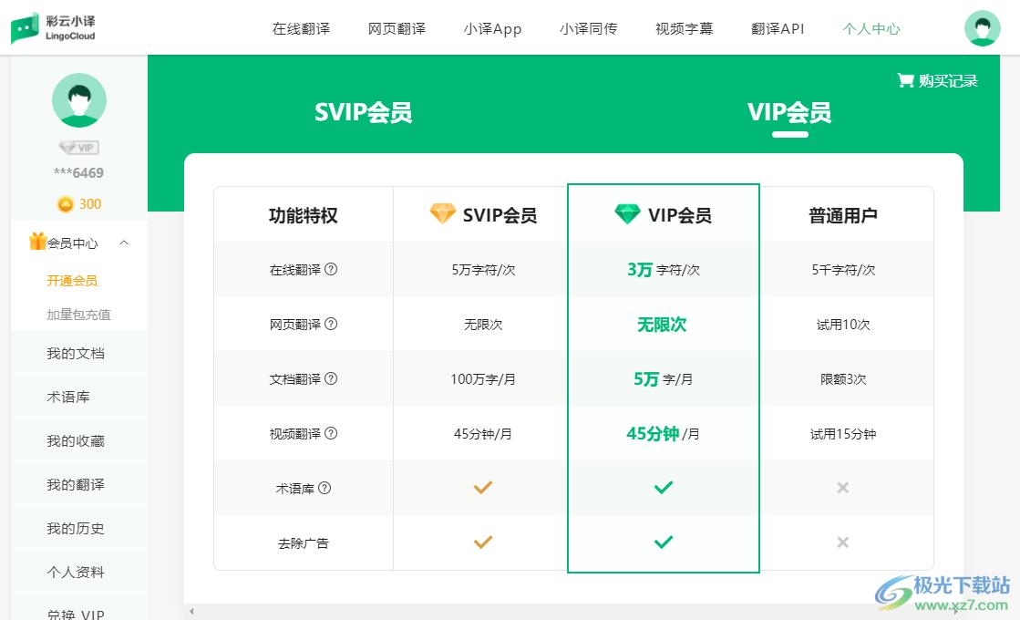 7、VIP权限功能,如果你需要精准翻译文档内容就可以购买软件的VIP功能,方便翻译自己的文档