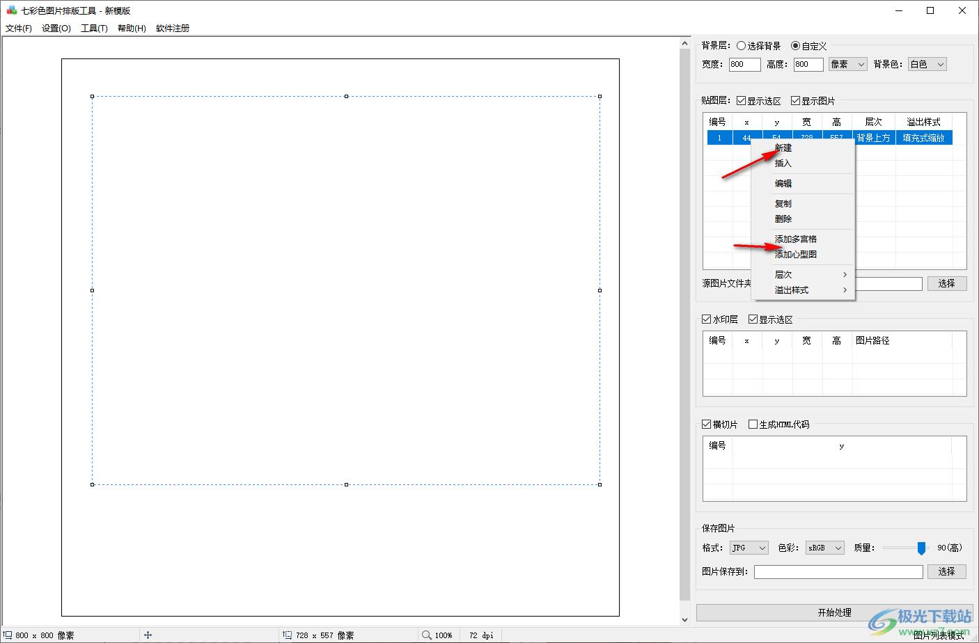 5、支持新建贴图层、新建水印层、新建横切片、添加多宫格、添加心型图